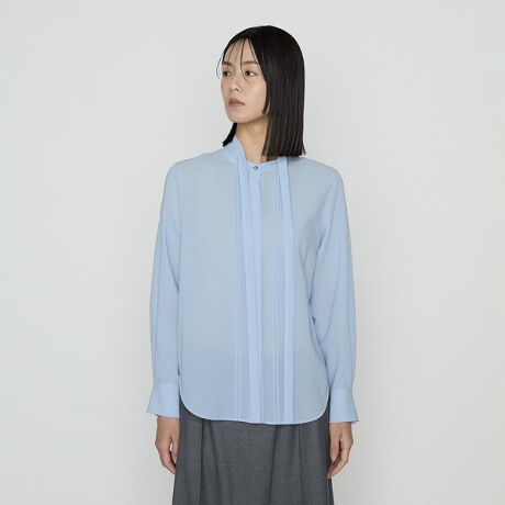 また、二段になっているバンドカラーの上段を折り返すと少し女性らしい襟元になります。