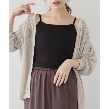 一枚で着ていただくのはもちろん背中が大きくあいているので、シアーシャツやブラウスなどのトップスやワンピースの中に着用していただくことも◎