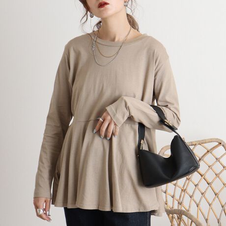 ペプラム 裾フレア 長袖カットソー M〜5L レディース