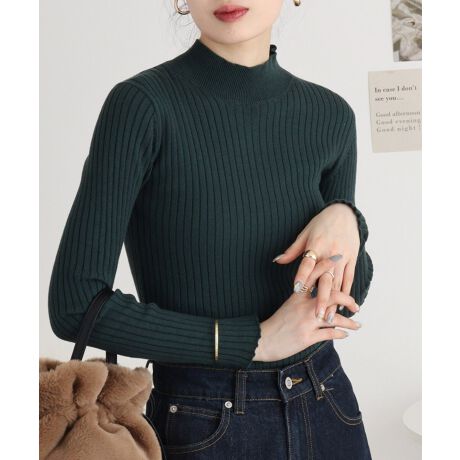 リブ編みの程よいフィット感がボディラインを美しく引き立て、スタイルアップ効果も抜群。