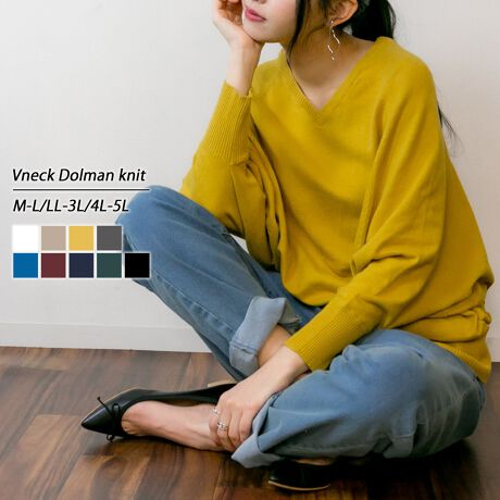 Vネック ドルマン 綿 ニット プルオーバー