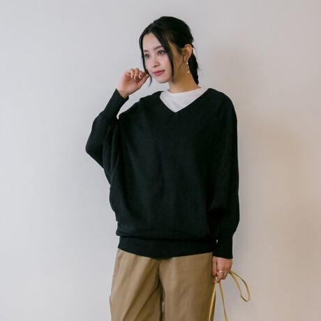 ふんわり感と着心地の良さを実現したデコルテVネックドルマンニット。