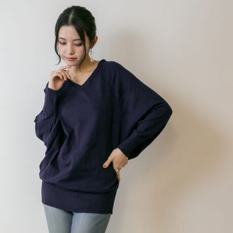 ふんわり感と着心地の良さを実現したデコルテVネックドルマンニット。