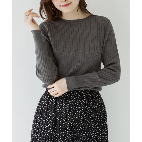 ラウンドネックリブニット