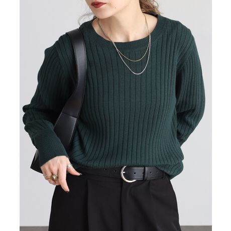 シンプルで合わせやすいリブニット、シンプルでシルエットの良さが人気の秘密。