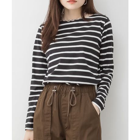 ラウンドネックボーダー長袖カットソー◇POINT肩フリルデザインを取り入れたボーダー長袖カットソー。この独特なアクセントがカジュアルなボーダーパターンにフェミニンな魅力を加えます。快適な着心地の素材で日常の装いにスタイルと遊び心をもたらし、どのようなボトムスとも相性抜群。日常から特別な日まで、幅広く活躍する洗練されたアイテムです。◇FABRIC耐熱性・吸水性・通気性に優れ、柔らかな肌触りのコットン100%。◇COORDINATEデニムパンツ(ジーンズ)やワイドパンツ、フレアパンツなど合わせたカジュアルな装いに◎スリットスカートやストレートスカート、マーメイドスカートなどを合わせた今時なゆる感あるスタイリングにもおすすめ。秋には、ファーベストやニットベスト、ロングジレのインナーとしても◎春先には、サマージャケットやテーラードジャケットなどのアウターを羽織ればワンランク上のスタイルが完成します。アクセントに、大ぶりなイヤリングやミニバッグ、バケットハットやキャスケット、スマホショルダーなどのアイテムを合わせてこなれ感を出すのも◎足元は、ローヒールパンプスやローファー、ミュールサンダルやキャンバススニーカー、グルカサンダルも◎【サイズ】