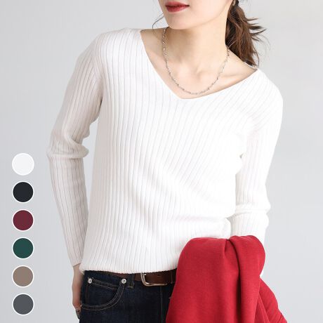 シンプルで合わせやすいリブニット、シンプルでシルエットの良さが人気の秘密。