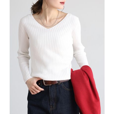 着まわし大活躍!コットン素材Vネックリブニット