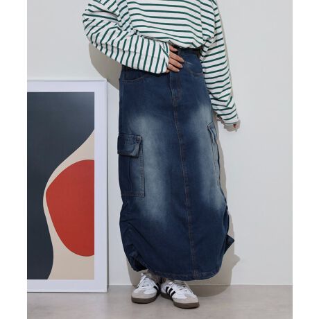 ヴィンテージ感漂う風合いと実用的なディテールが魅力のロングスカート。
