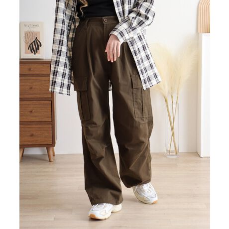 特徴的なワイドカーゴデザインはユニークなスタイルを演出し、両サイドの大きなポケットが機能性をプラスします。