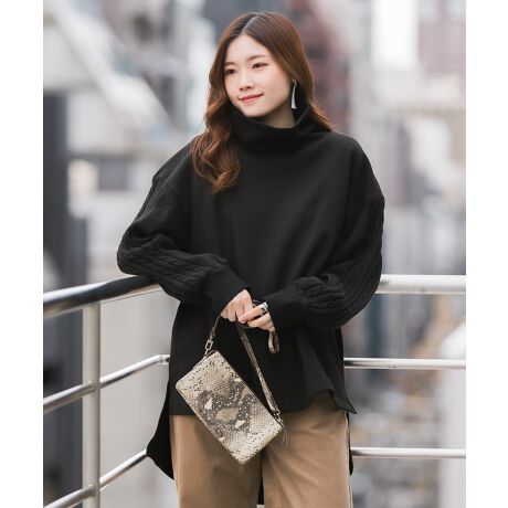 ニットドッキングハイネック裏起毛プルオーバー あったか