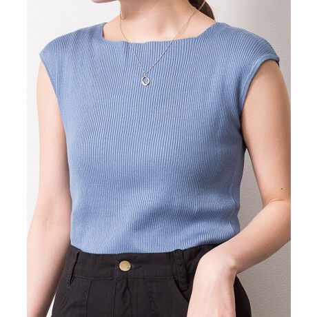 さらっとした涼し気な軽い糸を使ったボートネックの半袖サマーニット。