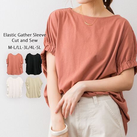 前後2WAYゴムギャザースリーブカットソー