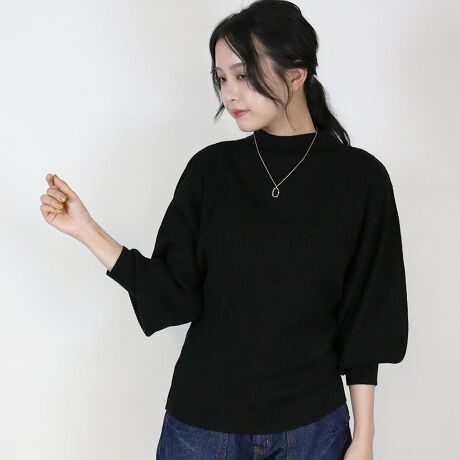 袖ポワンリブニットトップス