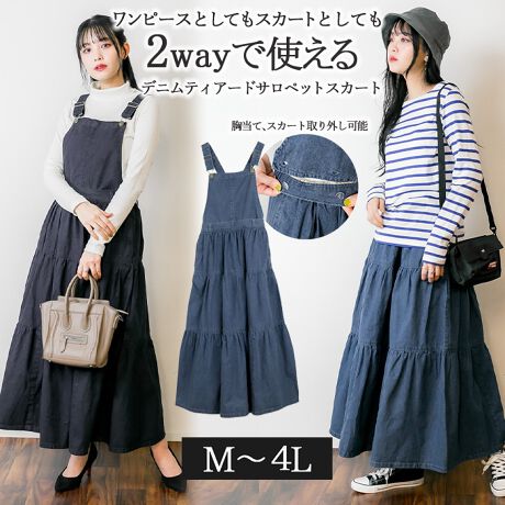 デニムティアードサロペットスカート