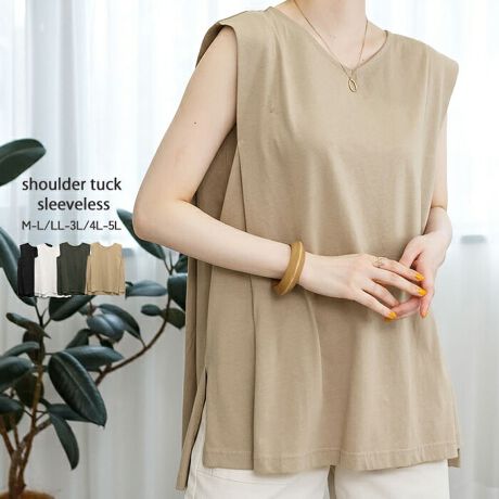 肩タックノースリーブ