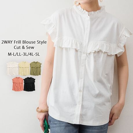 前後2WAY仕様のフリルブラウス風のカットソー。