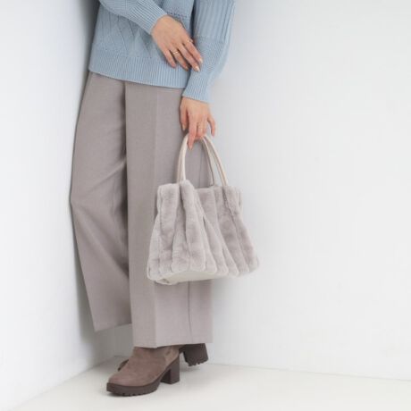 きれいめ見えするストライプのフェイクファーを使用したトートバッグです。