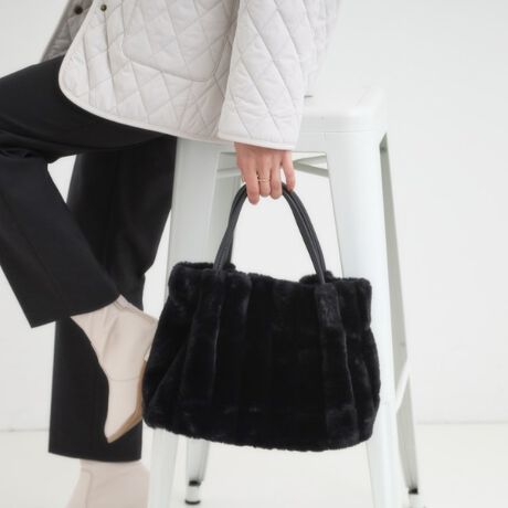 きれいめ見えするストライプのフェイクファーを使用したトートバッグです。