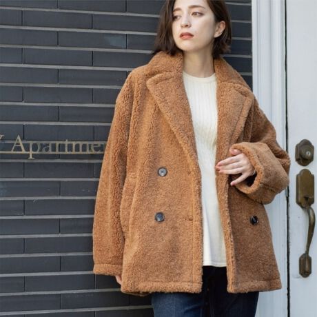 もこもこのボア素材を使用した、こなれ感のあるPコート