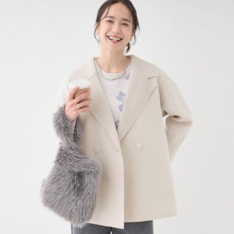 身長150cmでSサイズちょうどいいです。袖口を折り返すと襟と同じ生地が見えてそれもまたかわいいです。アイボリーを購入しましたが、中に黒いセーターを着たら脱いだ時に少し毛が付きました。