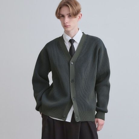 異なる色の糸を使うことで、畦で配色感ある編み地に仕上げています。