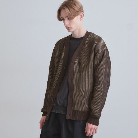 異なる色の糸を使うことで、畦で配色感ある編み地に仕上げています。