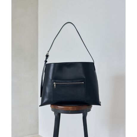 横型のフォルムをシャープに仕上げるジップ付きの立体ポケットをアクセントにしました。