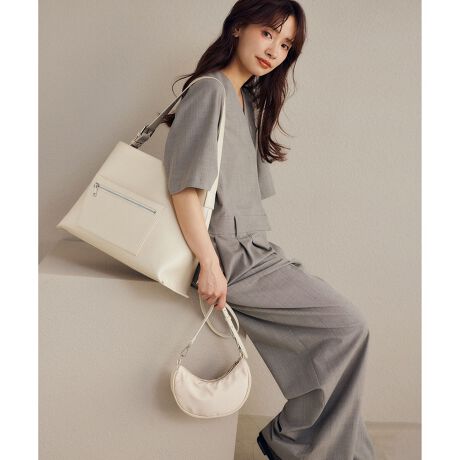 横型のフォルムをシャープに仕上げるジップ付きの立体ポケットをアクセントにしました。