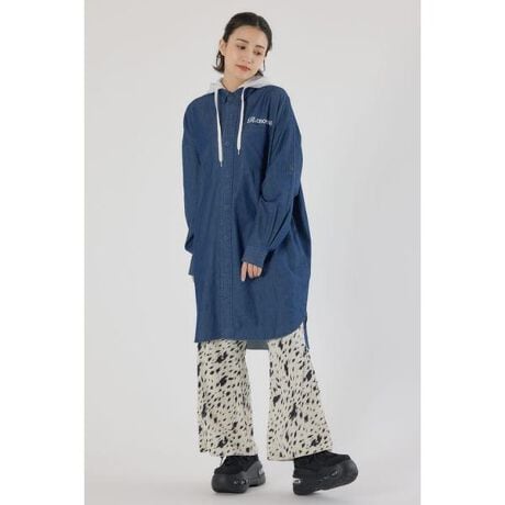 ■ポイントシャツ羽織りにもなる万能シャツワンピースです。袖をまくってとめることが出来るので晩夏から秋にぴったりです。フードも取り外し可能で、気候や気分にあわせて使えます。■ディテールバックのロゴやメッセージがダメージ感のあるツイルアップリケになっており、ヴィンテージ感のあるクールなロデオらしいデザインです。フロントは左胸にロゴ刺繍ワンポイント。脇にはシームポケットがついています。■スタイリングプリントTシャツやタンクトップに羽織として着たり、ブーツと合わせてワンピースとして着るのがおすすめです。■生地KHAとBLKは綿100%の20×16ツイルを使用。BLUは5ozINDIGOデニムを使用。製品STONEBIO加工をしています。BLUは経年劣化による色落ちがございます。後ろ身頃のアップリケ部分の裁ち切り加工は、デザイン上フリンジの出方に個体差がございます。■透け感:なし■裏 地:なし■伸縮性:なし■光沢感:なし[注意事項]※画像の商品はサンプルです。実際の商品と仕様、加工が若干異なる場合があります。※画像の商品は光の照射や角度、お使いのモニター環境により、実物と色味が異なる場合がございます。※着用、お取り扱いの際は、アテンションタグをご確認ください。