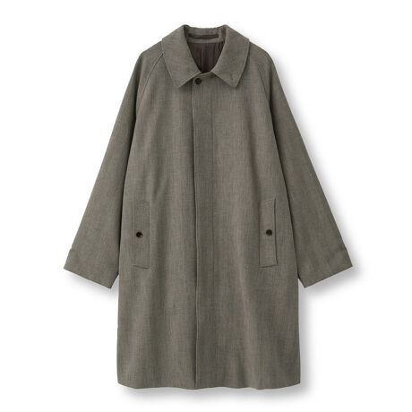 フロントはボタンが見えない比翼開き、襟はクラシックなステンカラーで、上品な印象を醸し出します。