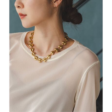 独特なハートモチーフが連なり、首元に華やかなムードを演出してくれるチョーカーネックレス。
