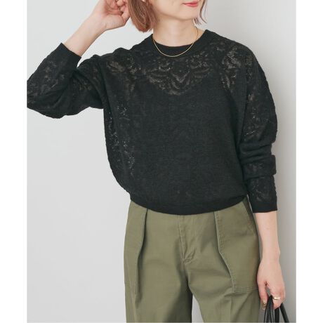 アンティークレースのような上品な透け感、1枚で華やぐ2WAYニット。