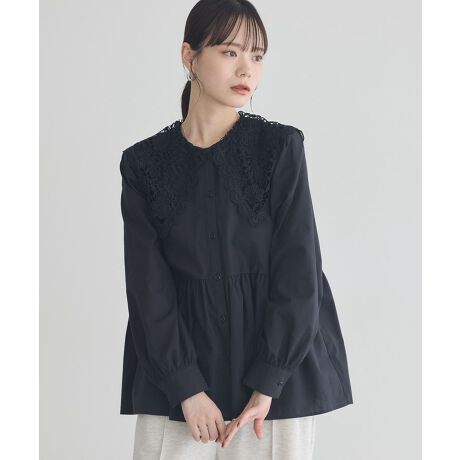 レース襟とフレアシルエットがフェミニンな印象のブラウス。フラワーモチーフの繊細なレースで顔周りに華やぎを与えます。コットン混のハリのあるテキスタイルでよりきれいめに演出。ストレートのパンツや女性らしいナロースカートにも合わせられるおすすめのアイテムです。