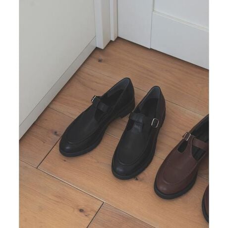 クラシカルなムードのTストラップローファー。