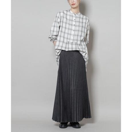 着るだけで今っぽさを纏える、フェイクスエード素材で仕立てたプリーツスカート。ニットやスウェットを合わせたり、ジャケットを合わせたり、幅広いコーディネートを楽しめます。