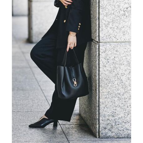 オフィススタイルにぴったりのシンプルデザイン。かっちりしすぎず程よい抜け感をプラス。大きすぎないサイズ感で、普段使いにも◎。