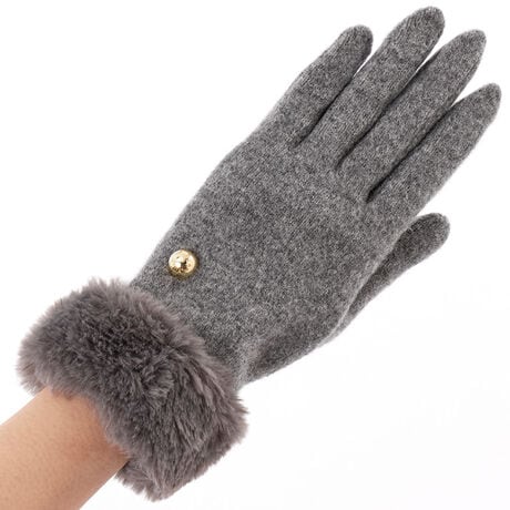 [型番:FRJ257170T]ジャージ手袋(フェイクファー・球体金具付)タッチパネル対応(親指・人差指・中指の指先に刺しゅう有り。導電糸刺しゅうによりスマホ操作が可能です。)