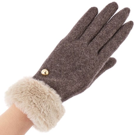 [型番:FRJ257170T]ジャージ手袋(フェイクファー・球体金具付)タッチパネル対応(親指・人差指・中指の指先に刺しゅう有り。導電糸刺しゅうによりスマホ操作が可能です。)