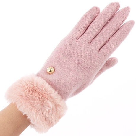 [型番:FRJ257170T]ジャージ手袋(フェイクファー・球体金具付)タッチパネル対応(親指・人差指・中指の指先に刺しゅう有り。導電糸刺しゅうによりスマホ操作が可能です。)