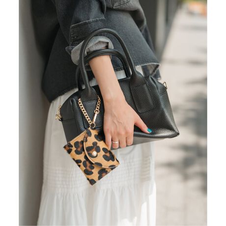 Spick & Span別注でレオパード柄のカードケースをつけ、程よくコーディネートのアクセントに。