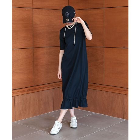 裾がフリルヘムになっていてシンプル過ぎず女性らしさをプラスしました。