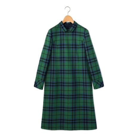 落ち着いたカラーリングのチェック柄が秋冬シーズンのコーディネートに彩りを添えるロングスリーブワンピースです。ウールベースの素材で、暖かな着用感を味わえる1着。ざっくりとした厚手のニットやダウンジャケットなどを羽織る着こなしもおすすめです。ロングブーツともバランスを取りやすい膝上丈です。