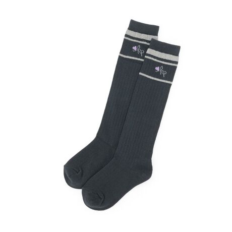 ライン入りのニーハイソックス。シンプルですっきりした印象で合わせやすく、スクールテイストの着こなしにもよく合います。