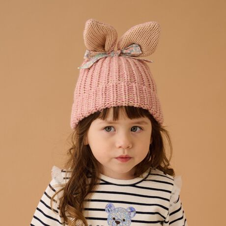 立体的なうさ耳が可愛らしさを引き立てる帽子です。