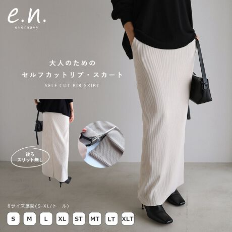 セルフカット リブ タイト スカート (S-XL/トール) evernavy エバーネイビー