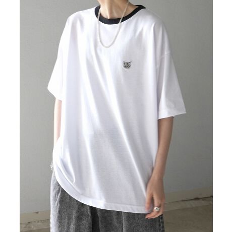 ILL’S(イルズ) ビッグシルエット イヌ / ネコ 動物ワンポイント刺繍Tシャツ