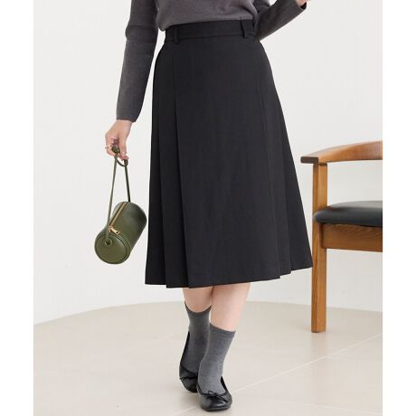 ミディ丈のタックプリーツが上品で女性らしい印象のスカート。
