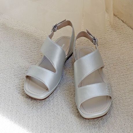 ヒールはウェッジタイプで歩きやすく、中敷下には厚めの低反発クッションを使用。長時間のおでかけにもおすすめです。