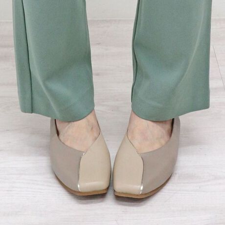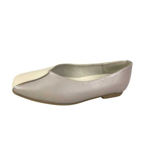 さりげないカラーコンビネーションと、つま先のメタリックテープがアクセントのVカットシューズ。